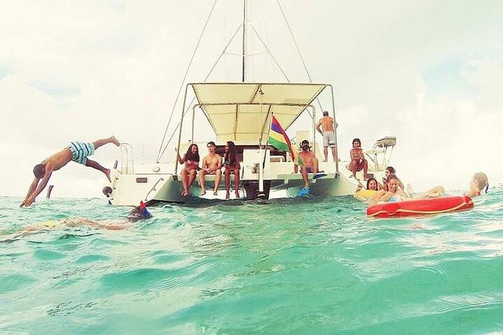During the journey on the Catamaran , very often to be seen Dolphins and Enjoy snorkeling in the lagoon , and enjoying a seafood barbecue on board .